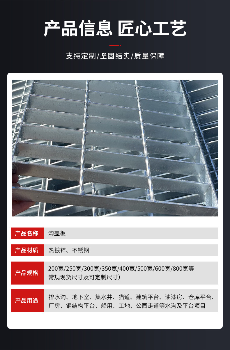 水沟盖板应用场合:污水处理厂,电厂,化工厂,炼油厂,造船厂,市政建设等等中的沟盖。