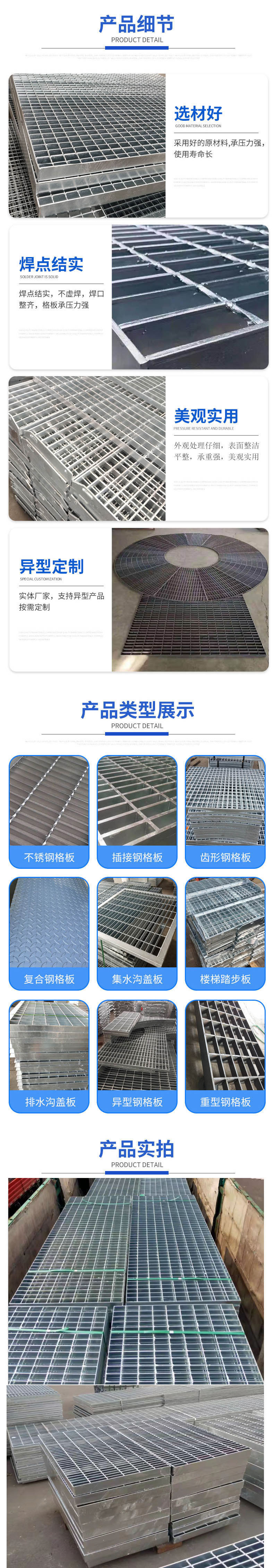 电厂用钢格栅可在周边增焊踢板(挡边板)、花纹板护板,安装连接件等附件。可采用载扁钢不同规格的扁钢包边,或用角钢、槽钢、方管等包边;还可在需经常移动或打开的钢格板上安装把手和铰铰链。